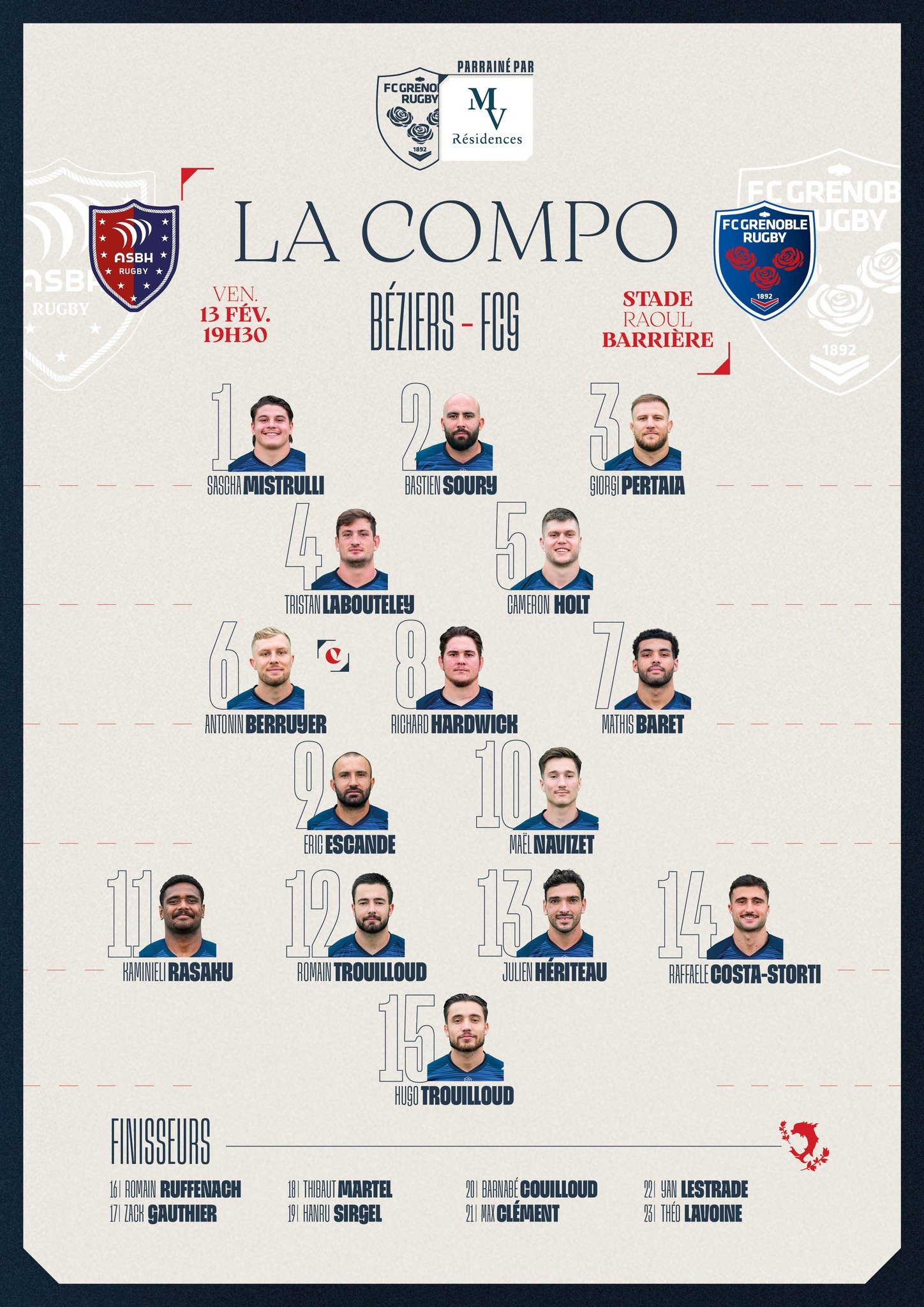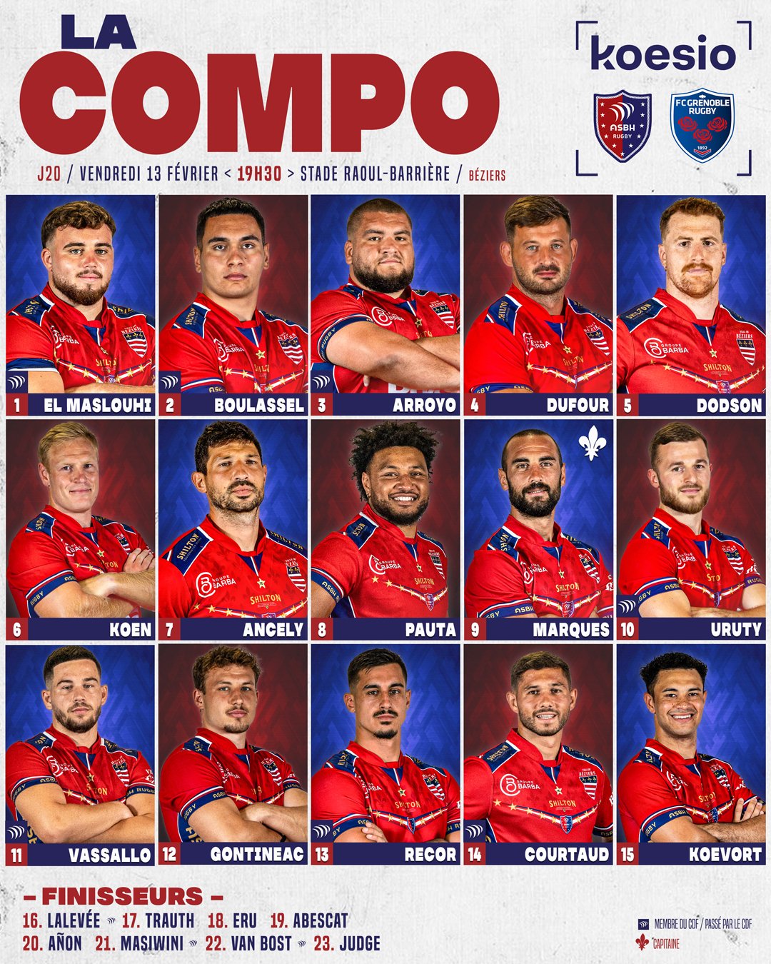 Personne ne veut parler du prochain match à Béziers ? Pourtant on envoie la grosse équipe et au passage on copie Galthier en mettant un 3eme ligne en 2nde ligne par l'intermédiaire de Martel, remplaçant,mais saluons l'audace ou bien on est à l'os et pour le staff cela ne doit pas être facile de monter une équipe compétitive.Bref on continue à manger du pain noir et cela devient inquiétant car sur ce block il faut marquer des points.un point vendredi serait déjà une bonne chose mais je n'y crois pas